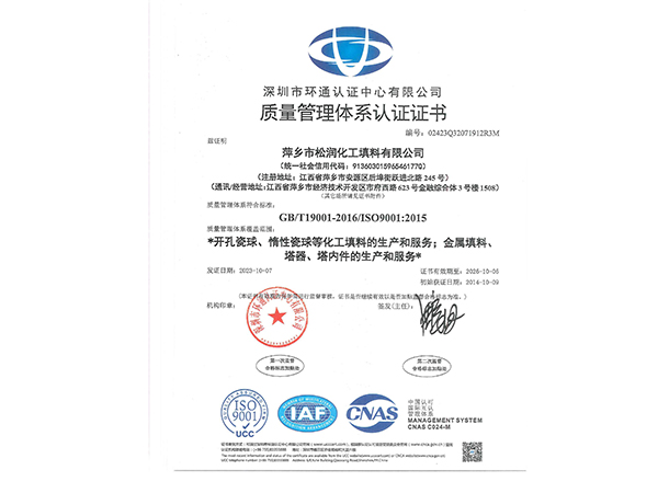 萍鄉市松潤化工填料有限公司位于江西省萍鄉市國家經濟開發區西區,是專業生產、經營陶瓷、聚丙烯、金屬填料、塔內件、水處理濾板、濾管、濾料、瓷球、分子篩、催化劑、活性炭、蜂窩陶瓷、瓷質耐磨托輥等系列產品的民營企業。所有產品由國家非金屬材料和設備質量監測中心監測檢驗認證。公司現有員工280人,其中有高、中級職稱技術人員36人。工藝先進,技術力量雄厚,產品質量可靠,配...